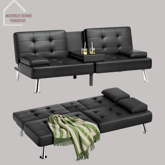 Faux Leather Convertible Folding Sofa