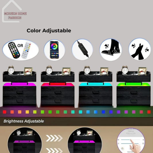 LED Nightstand with Voice-Activated Side Table